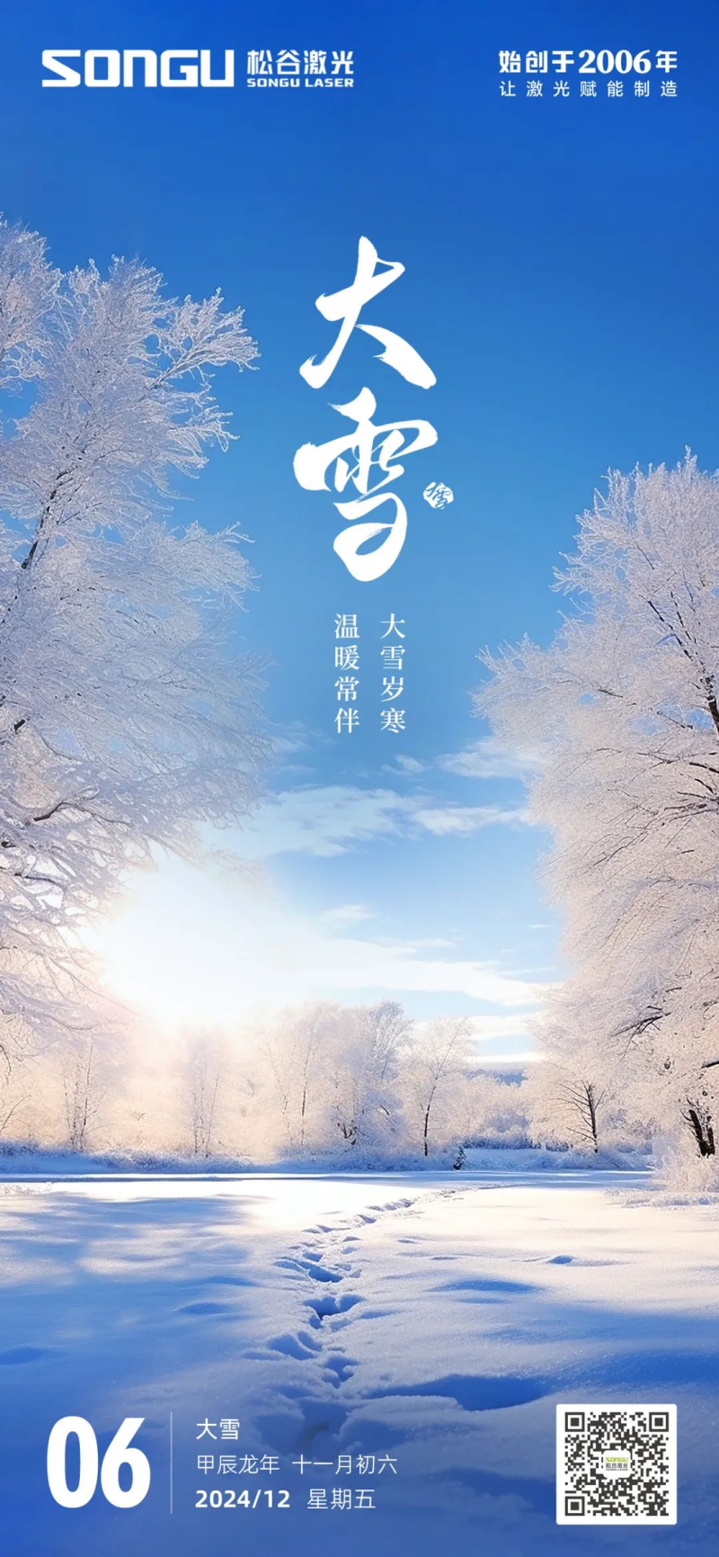 大雪至,福氣盈門。愿這份來自松谷激光科技的祝福,如同雪花般純凈無瑕,飄落在您的心田,為您和您的家人帶來一整年的幸福與安康。愿您在新的一年里,事業(yè)蒸蒸日上,家庭和睦美滿,健康平安,笑口常開。