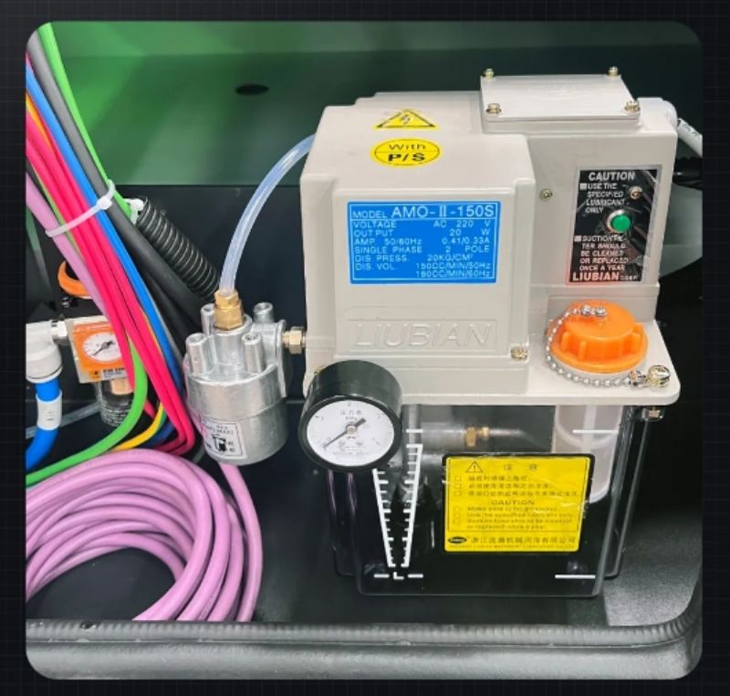 定時自動供油,對機(jī)床的滑塊和傳動齒輪定量稀油潤滑