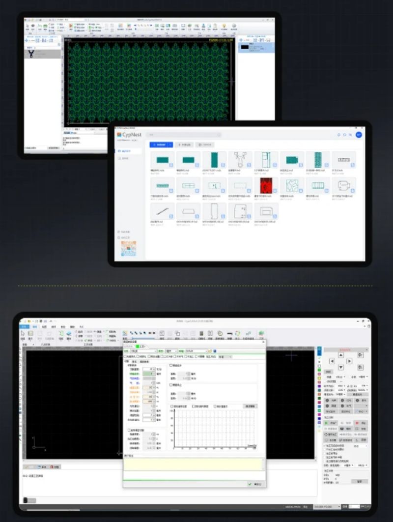 自動優(yōu)化切割路徑,支持智能排版、快速套料、遠(yuǎn)程推送加工等功能。